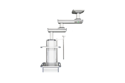 可旋转,增大设备工作覆盖范围,提高设备的使用效率;调整、使用更加随心、便利。塔头和承载平台只能在悬臂半径的圆周上悬停,所以单悬臂是作为面积较小的手术室才选择。旋转角度≤340°。
